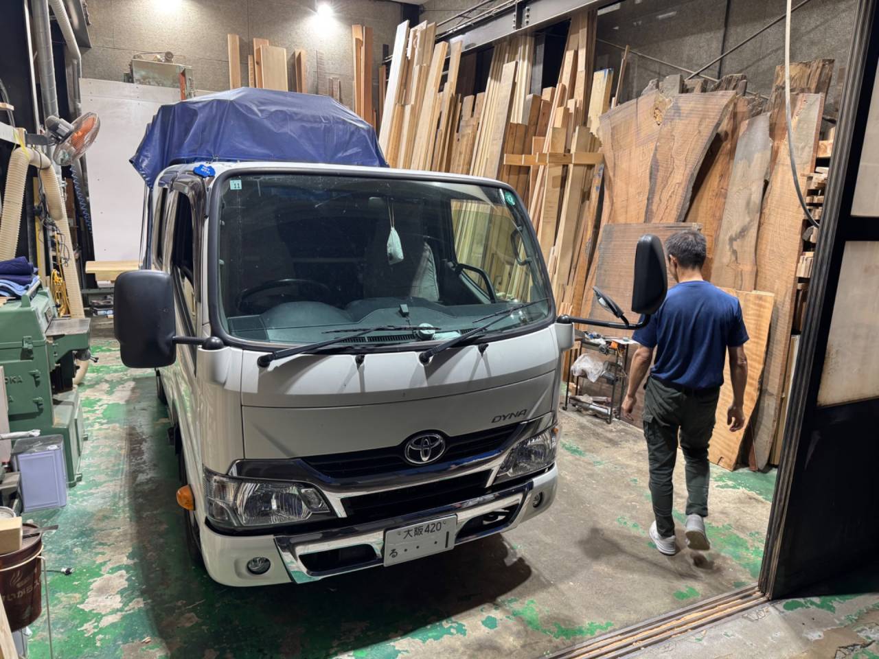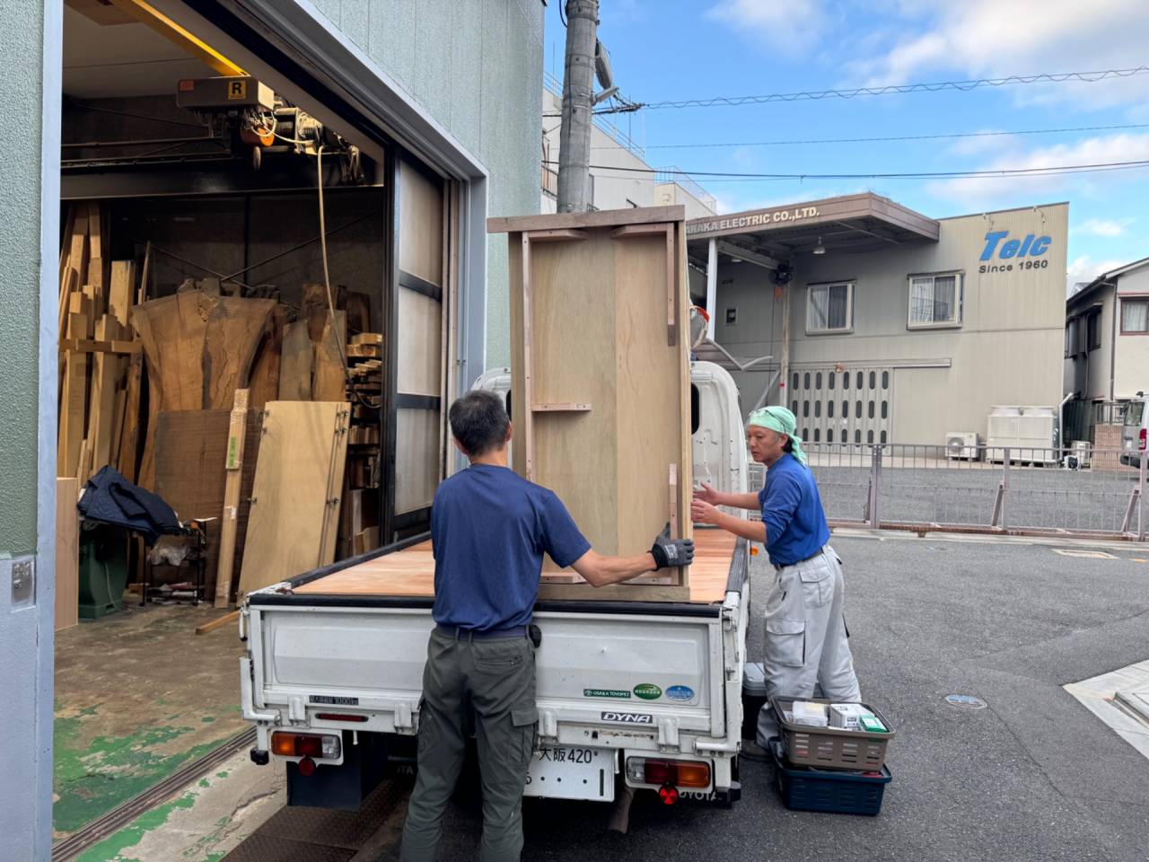 製作していた家具やベニヤ板、道具など積み込んでいます。