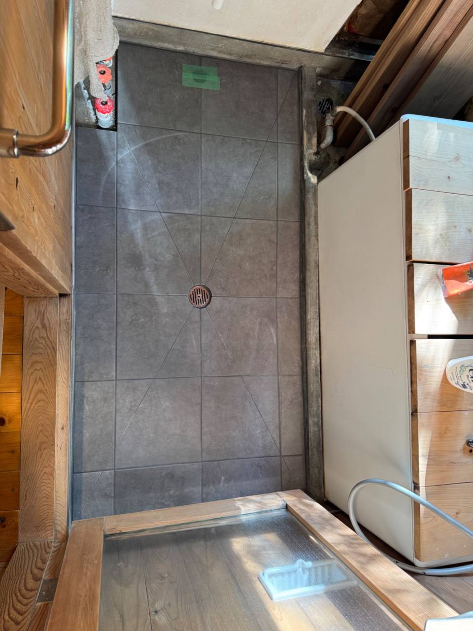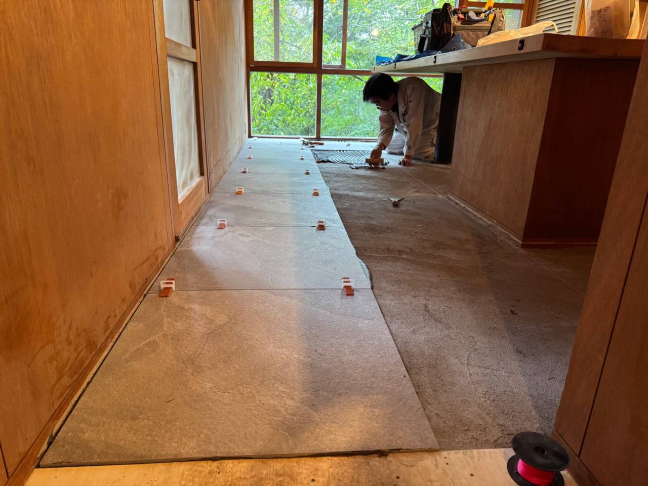 都内のタイル屋さんもお声掛けしたのですが、大阪でいつもお願いしているタイル屋さんの方が工事費用を抑えられたのでそうしています。