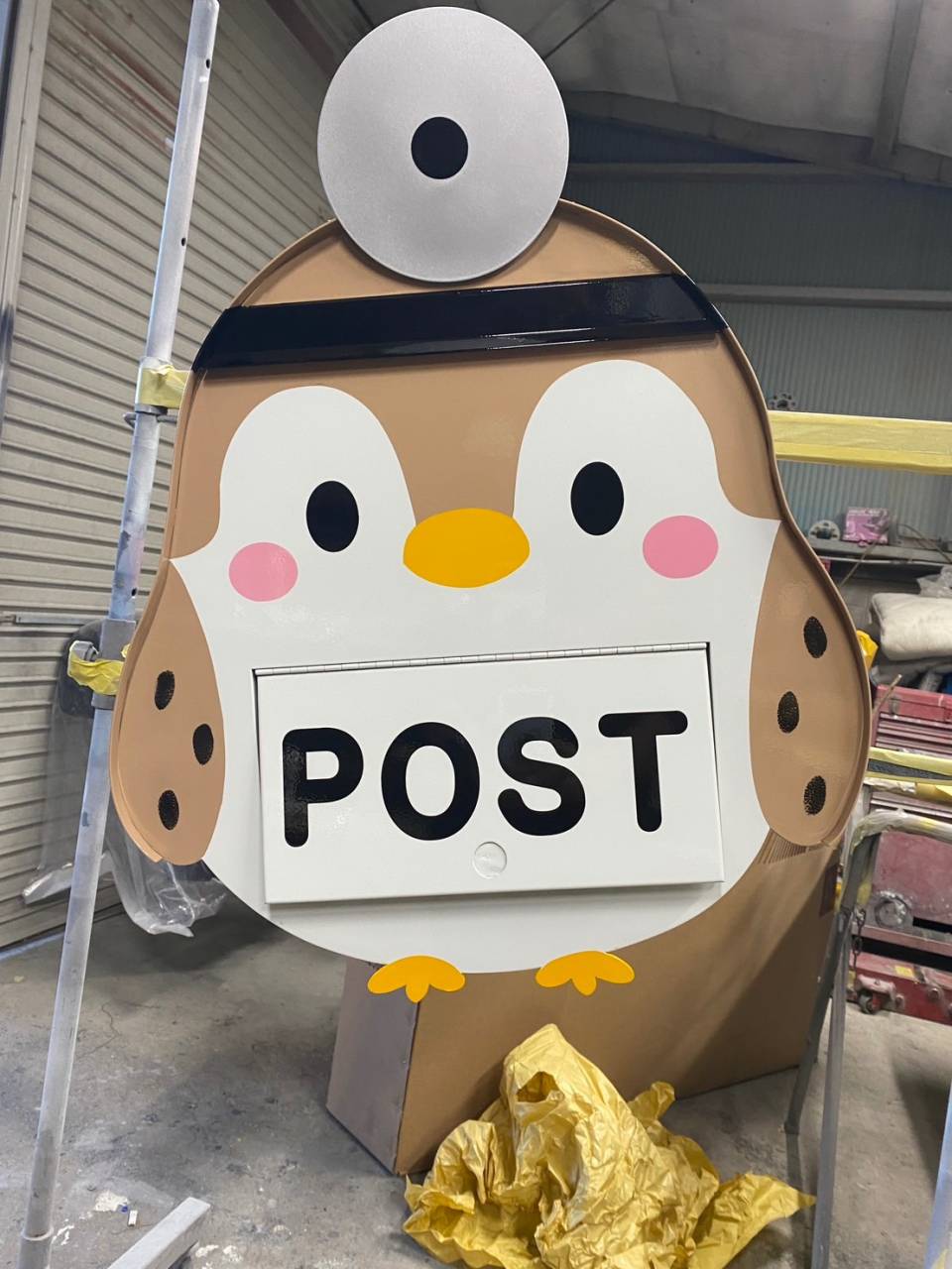 工事中にご依頼の雀をモチーフにしたオリジナルポストを製作しました。
