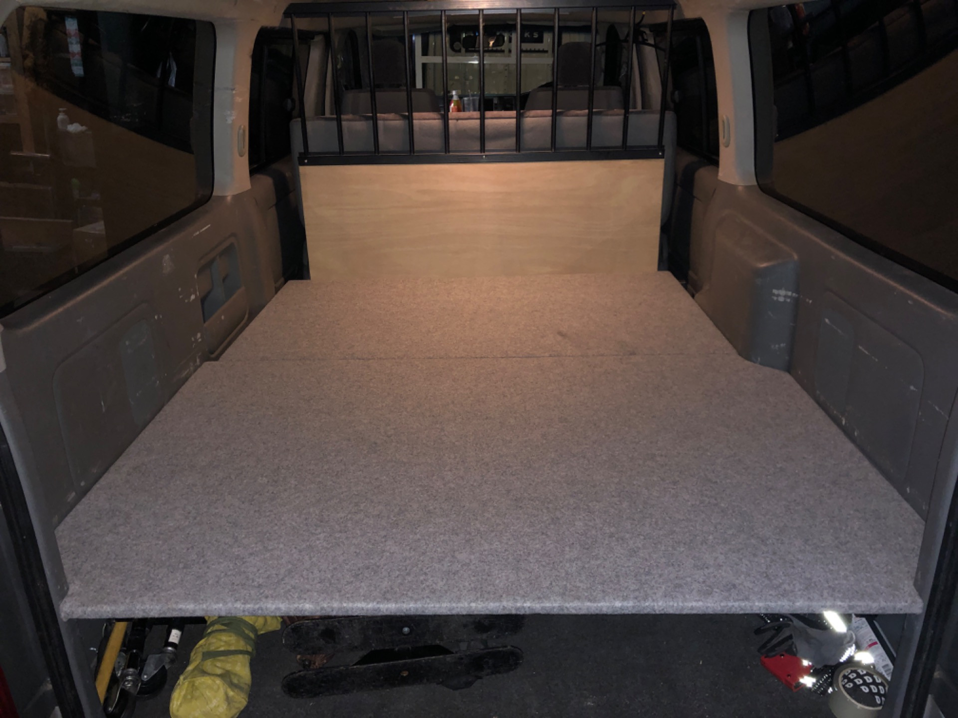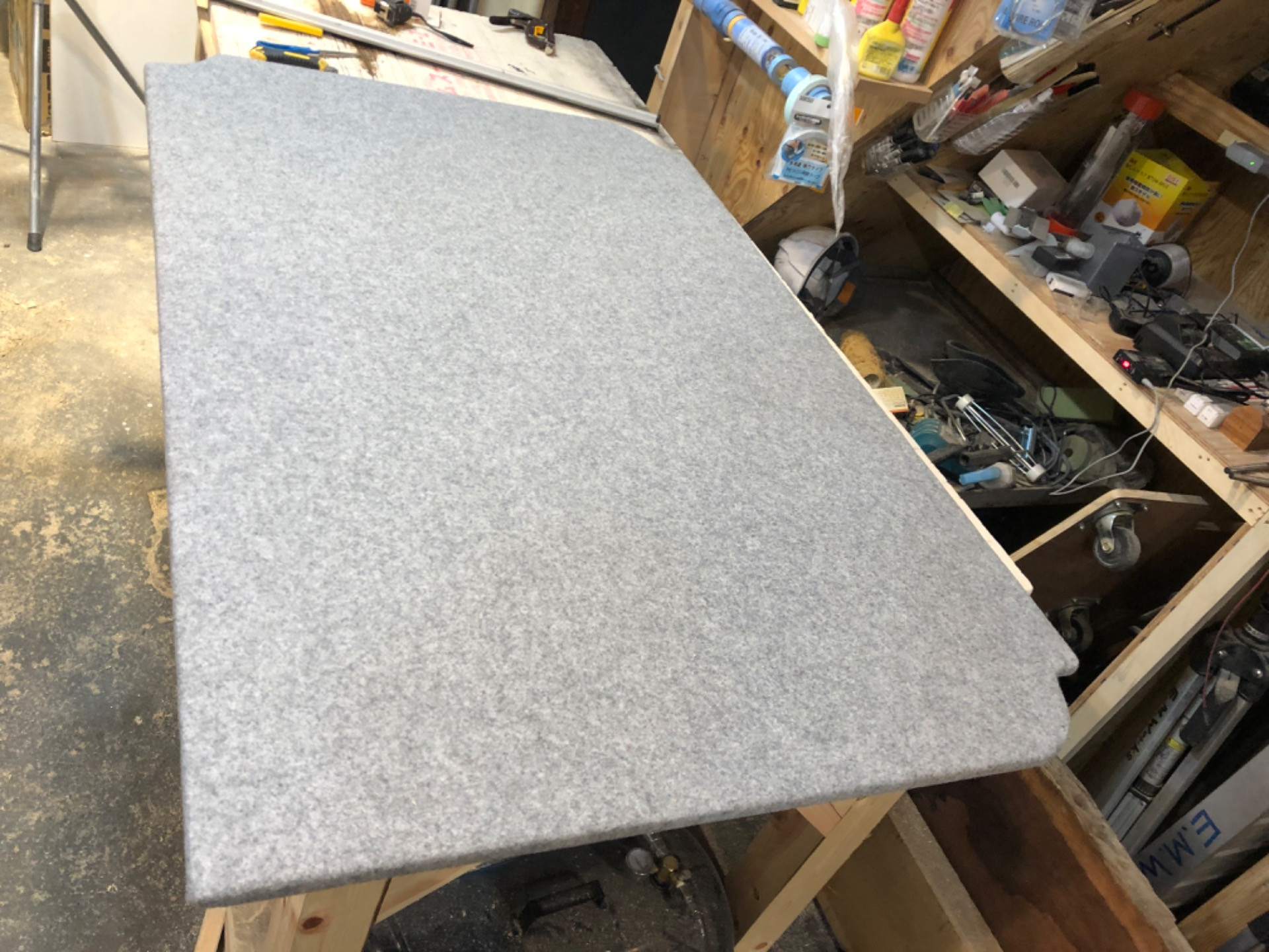 型取りしたベニヤにパンチカーペットを張っていきます。
