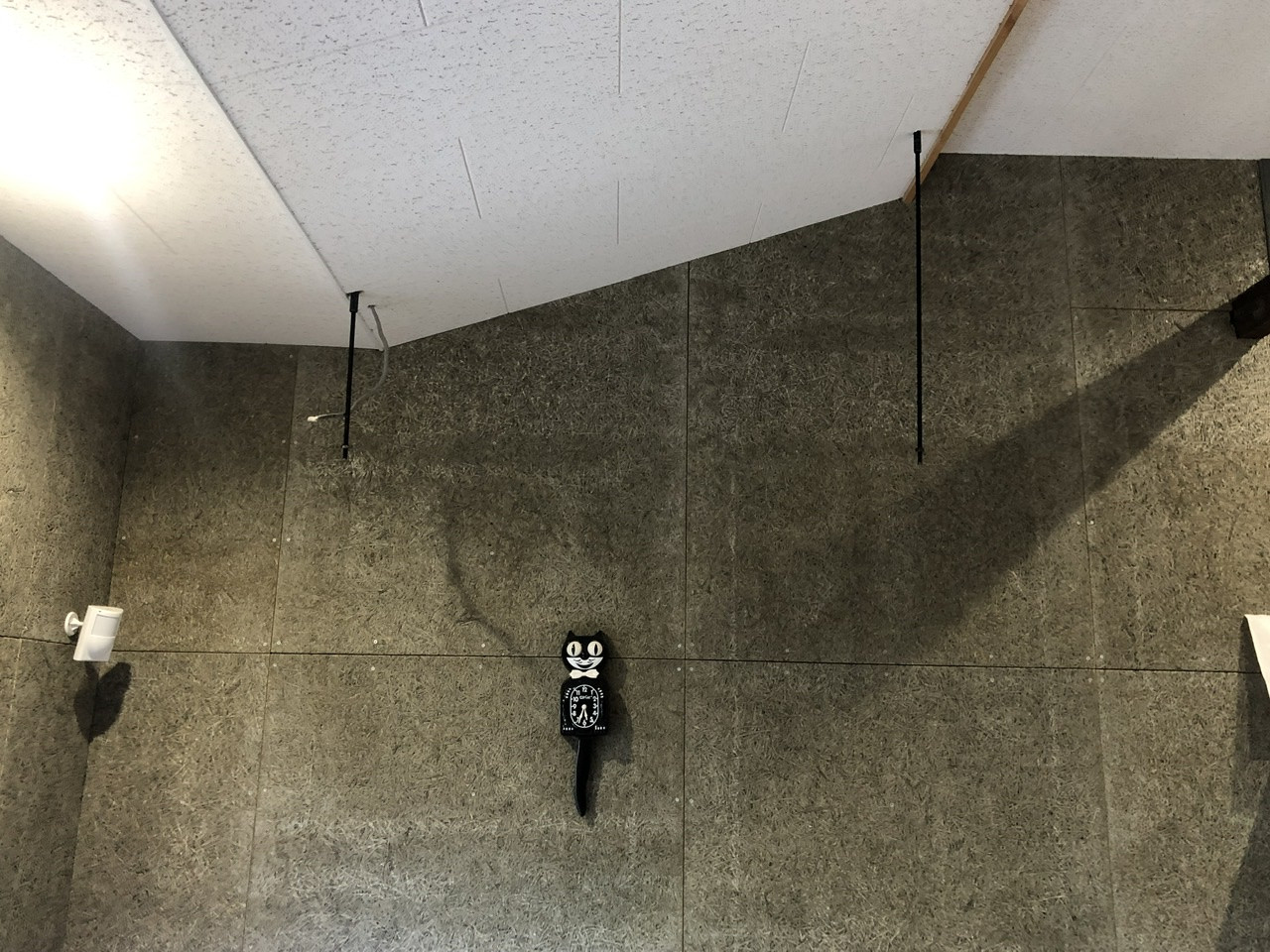 ずっと手を付けていなかったのですが、事務所の工事を始めた当初からここに吊り棚を付ける予定で、吊りボルトを吊れるように金物を仕込んでいました。