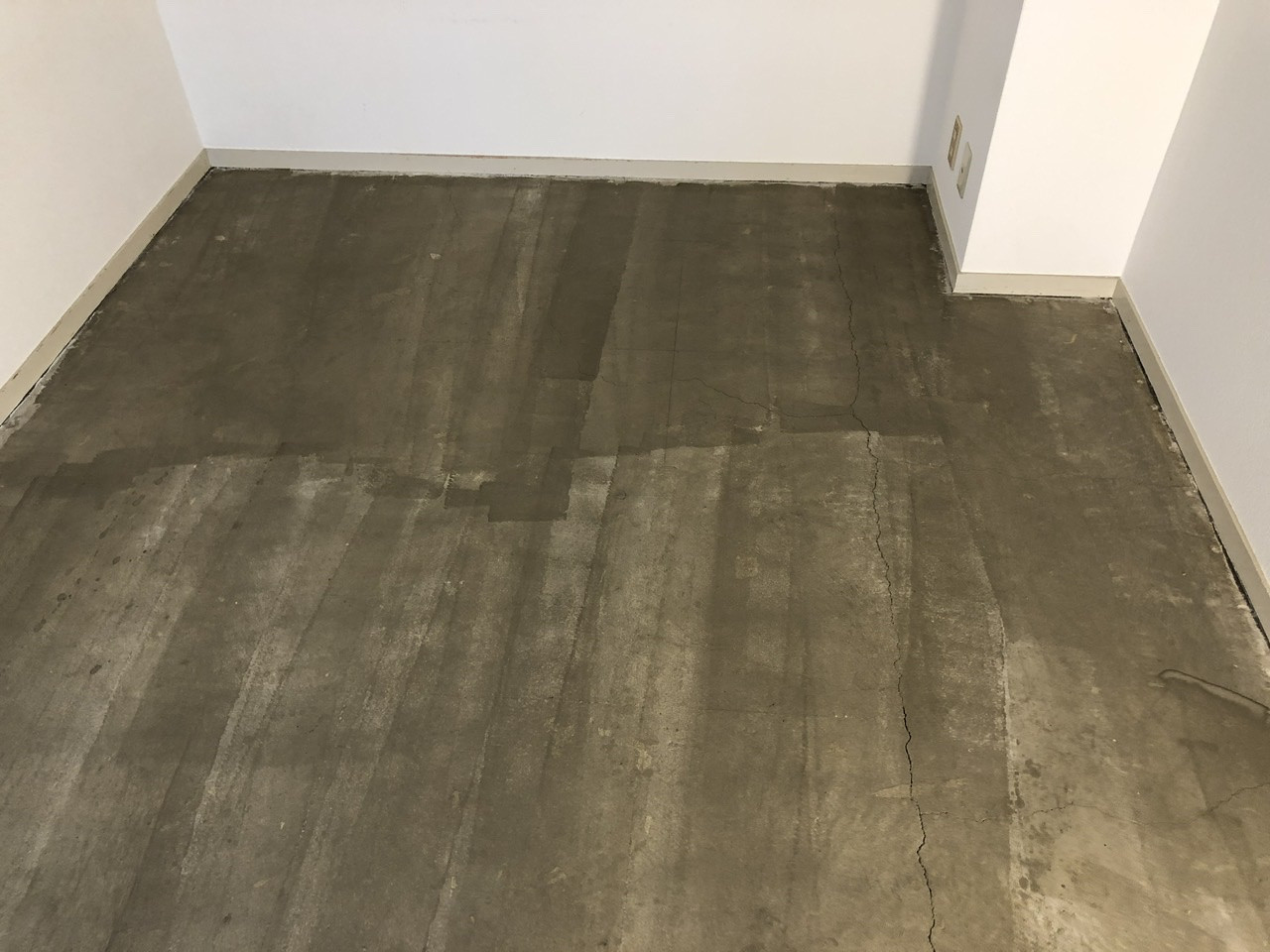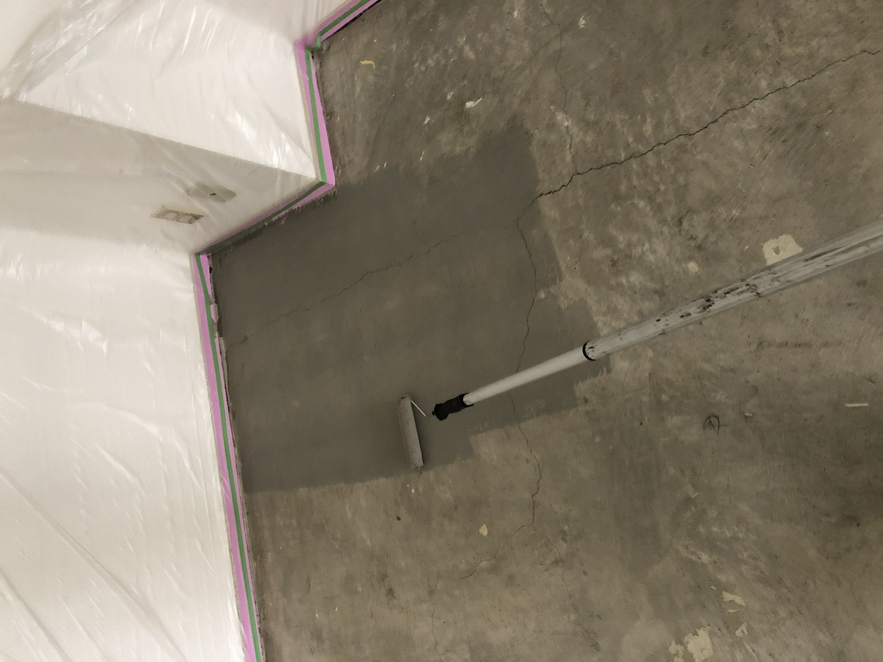 まずは既存のタイルカーペットをめくり、タックバスターの施工を行いました!