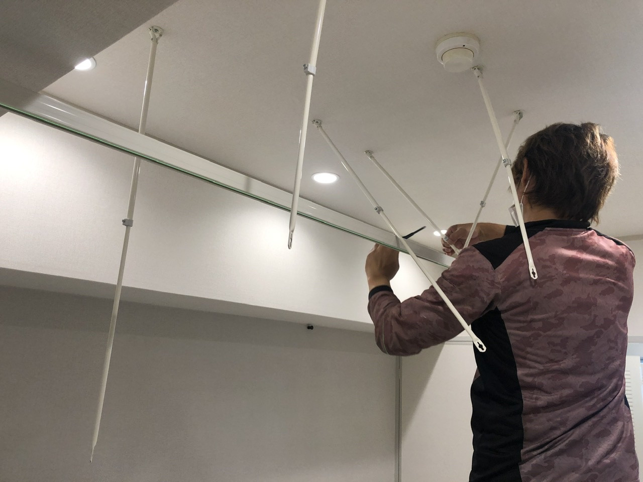 大阪梅田、中崎町のまつげエクステ、アイラッシュサロンのカーテンレール工事 2020/09/11 ミラーの取付 お施主様支給のミラー取付しました 吊りカーテンレール取付 空間を簡易で仕切るのに便利です 店舗工事