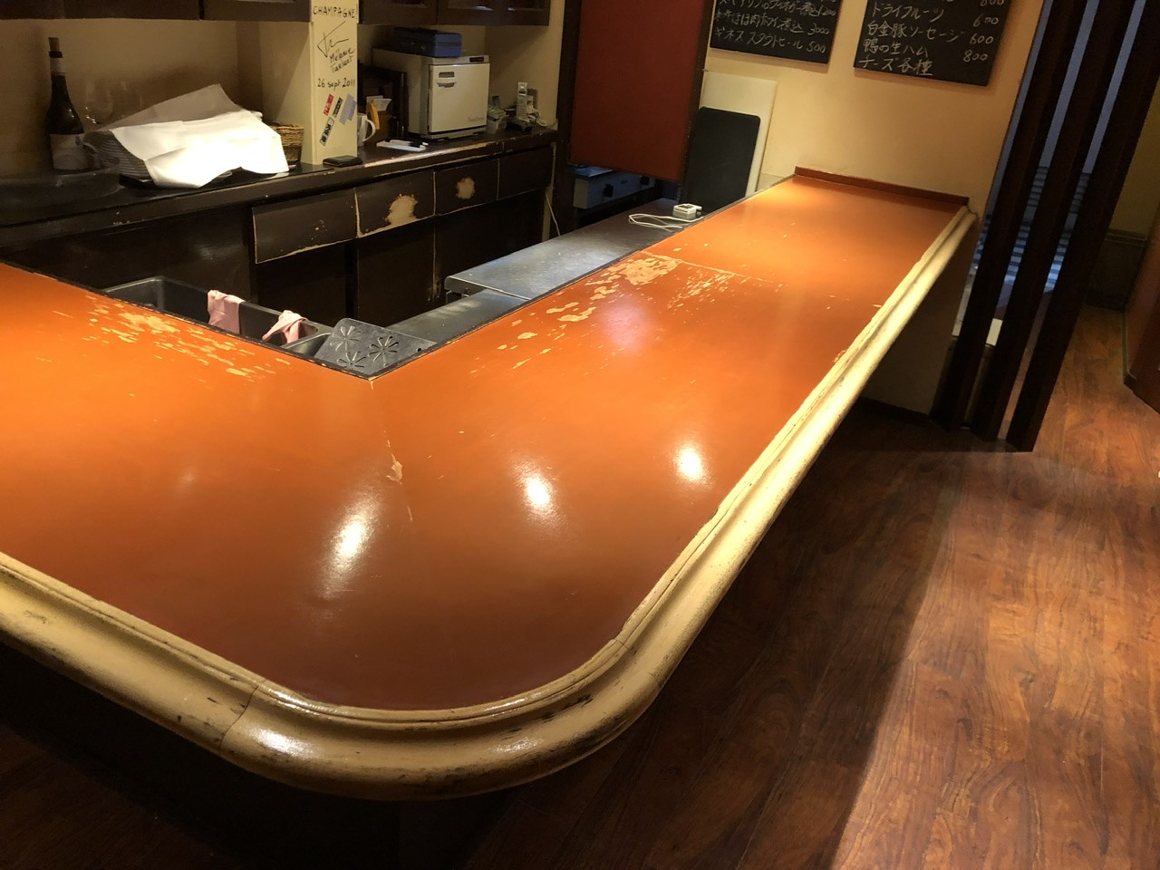 カウンターの状態は何度か塗装をやり直されており、少し痛みが出てきておりました。