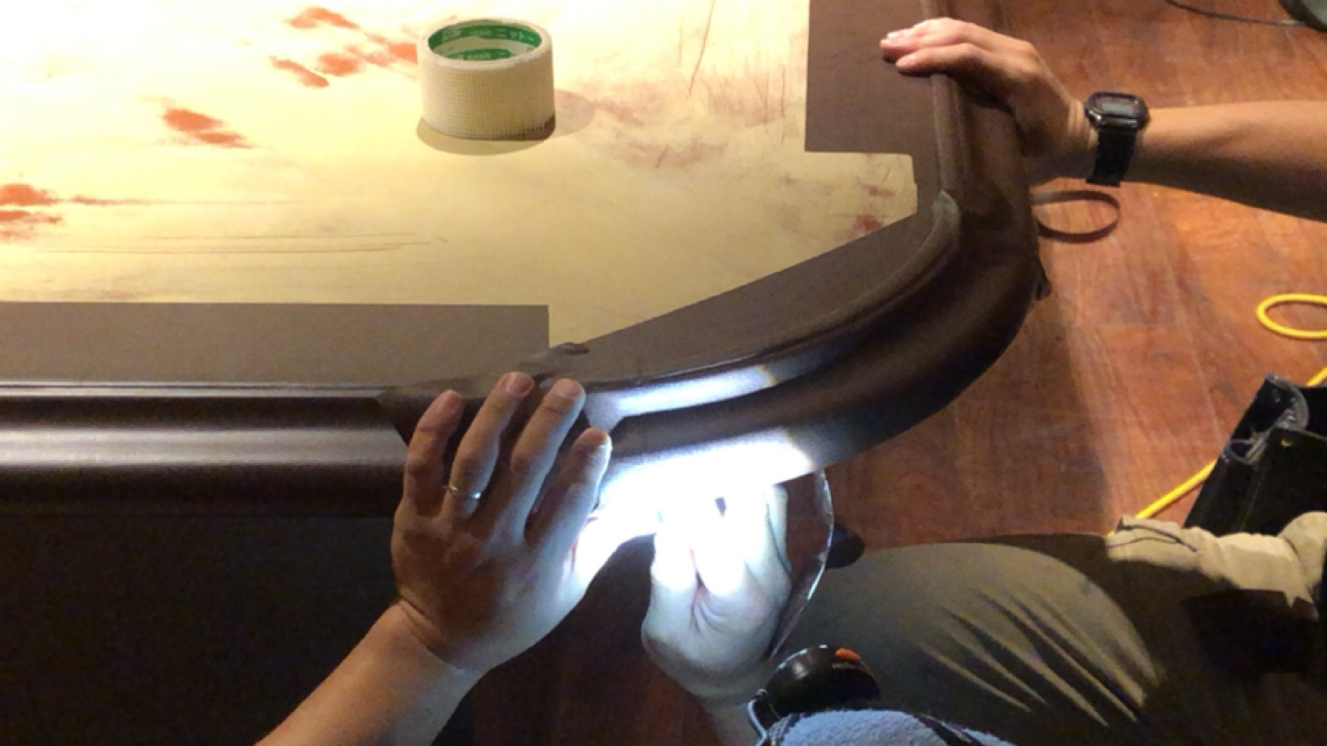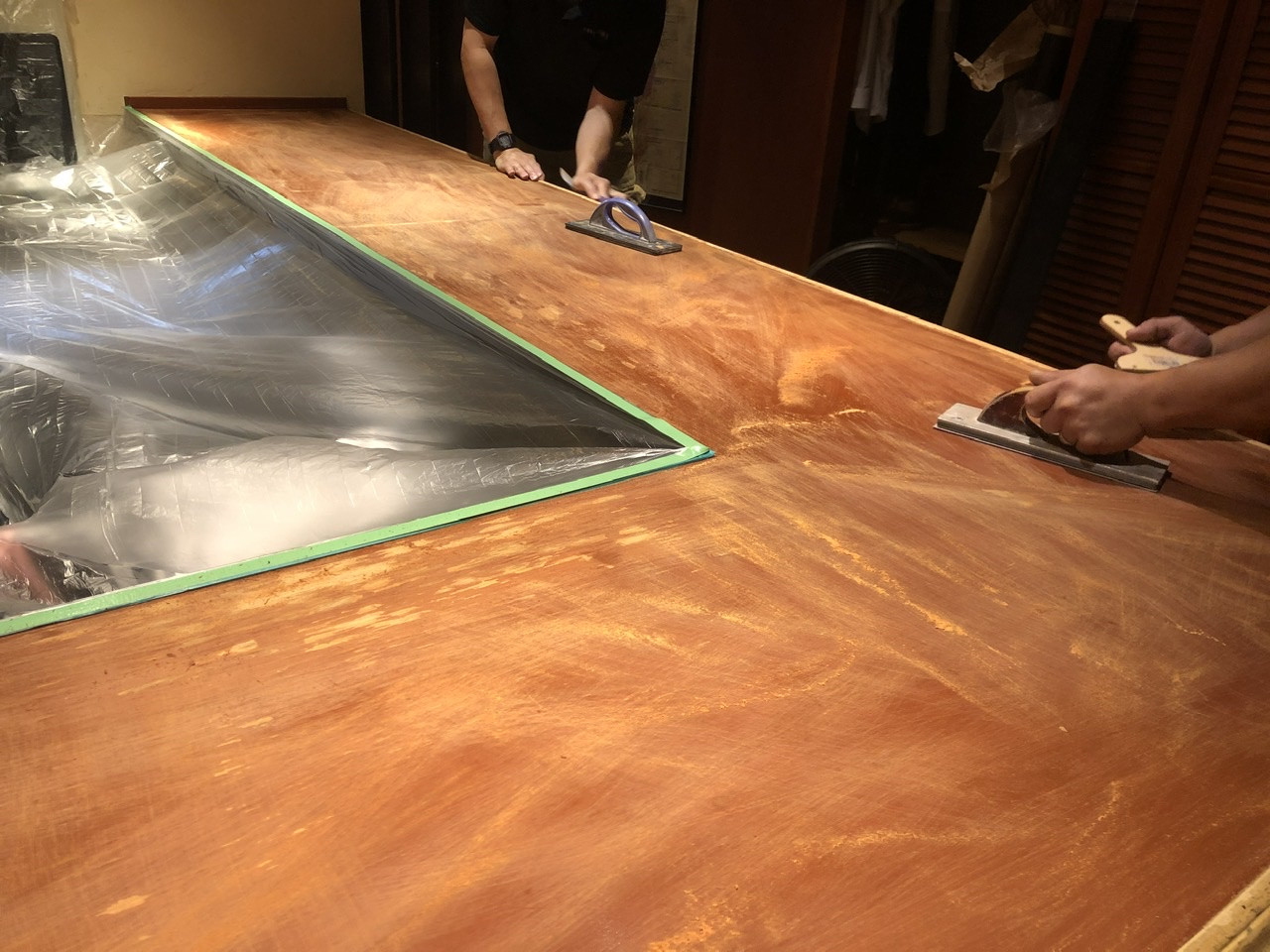 このカウンターはアールになっている為難易度の高いシート施工となりますが、なんなくこなしてもらえました!