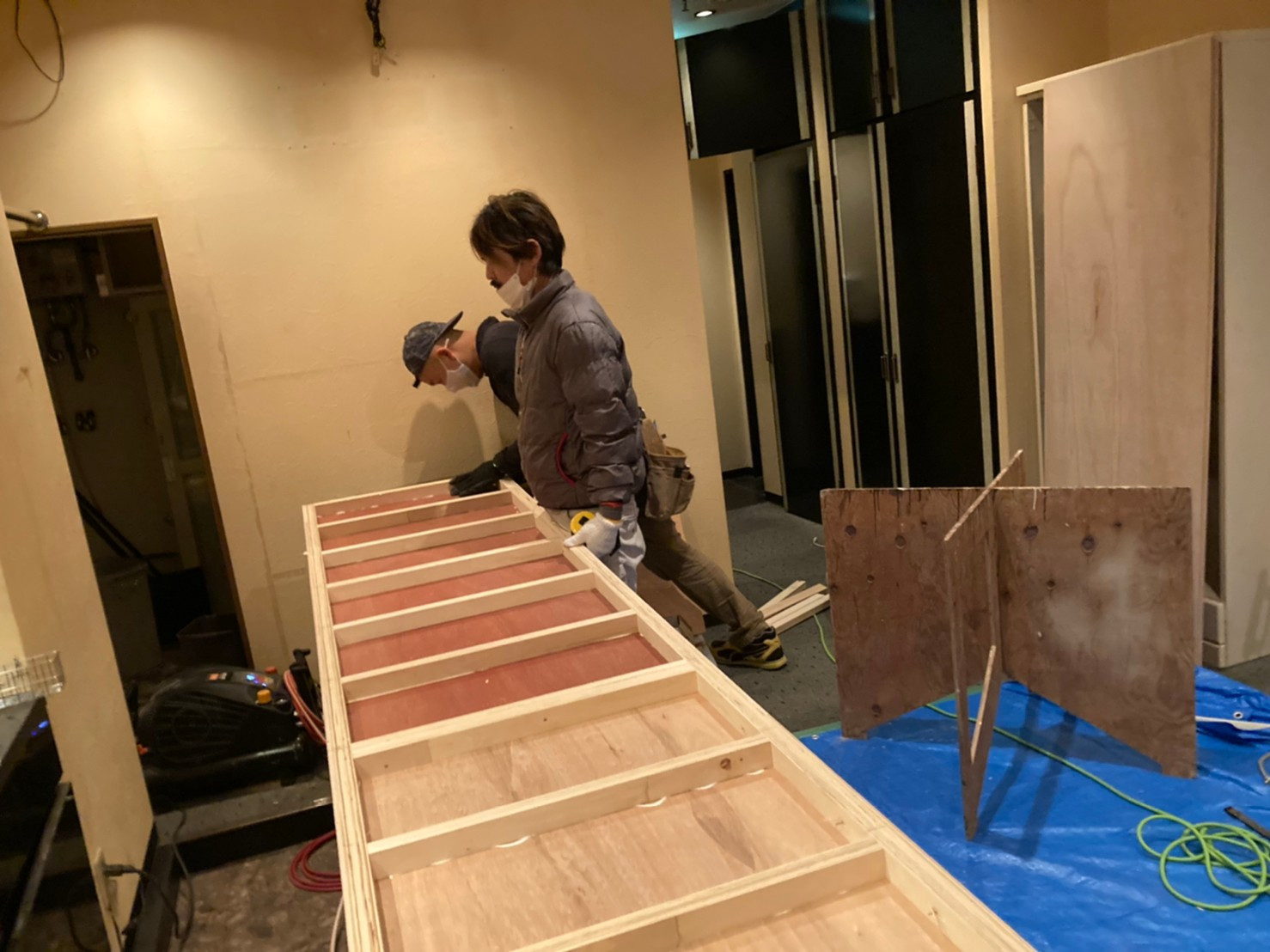 宗右衛門町の空きテナント様にて2日間でカウンターの工事を行なってきました!