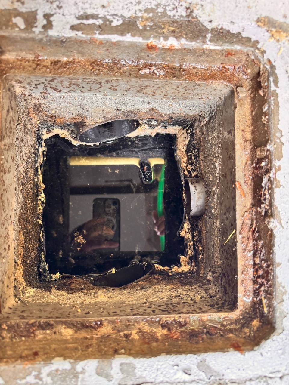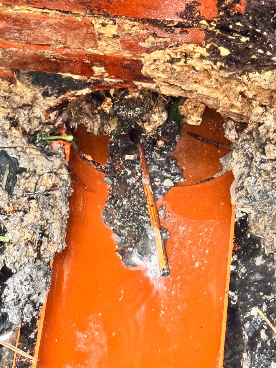 市の本管まで全ての排水管に脂が詰まっており、ここまでいくと排水の高圧洗浄(洗管作業)を行わないと、脂の除去は不可能でした。