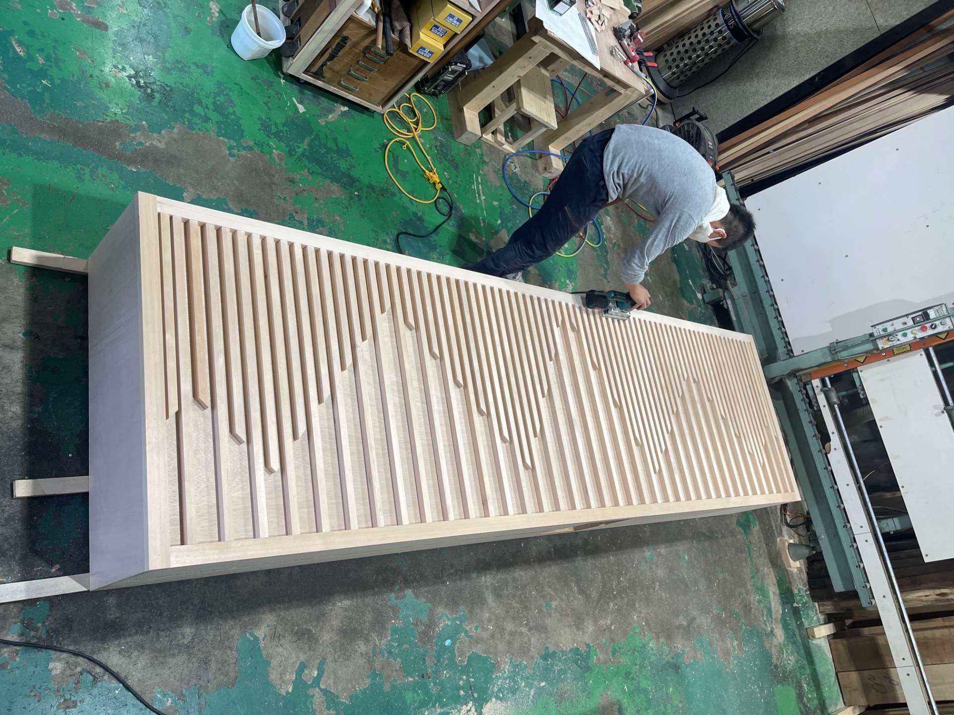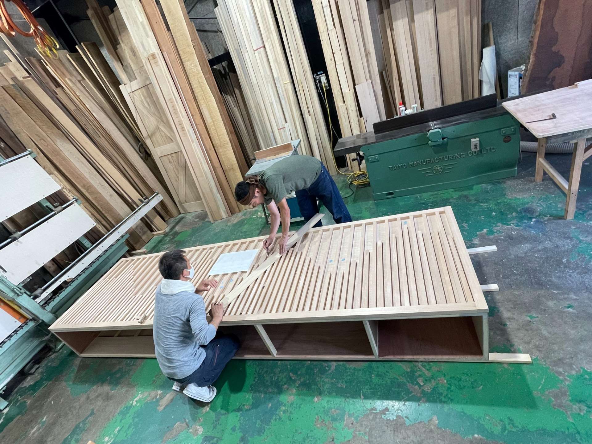 木工加工から仕上げのクリア塗装までを工場内で完了させています。