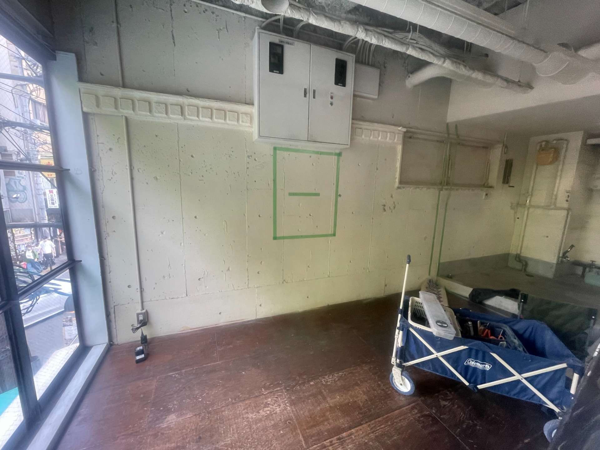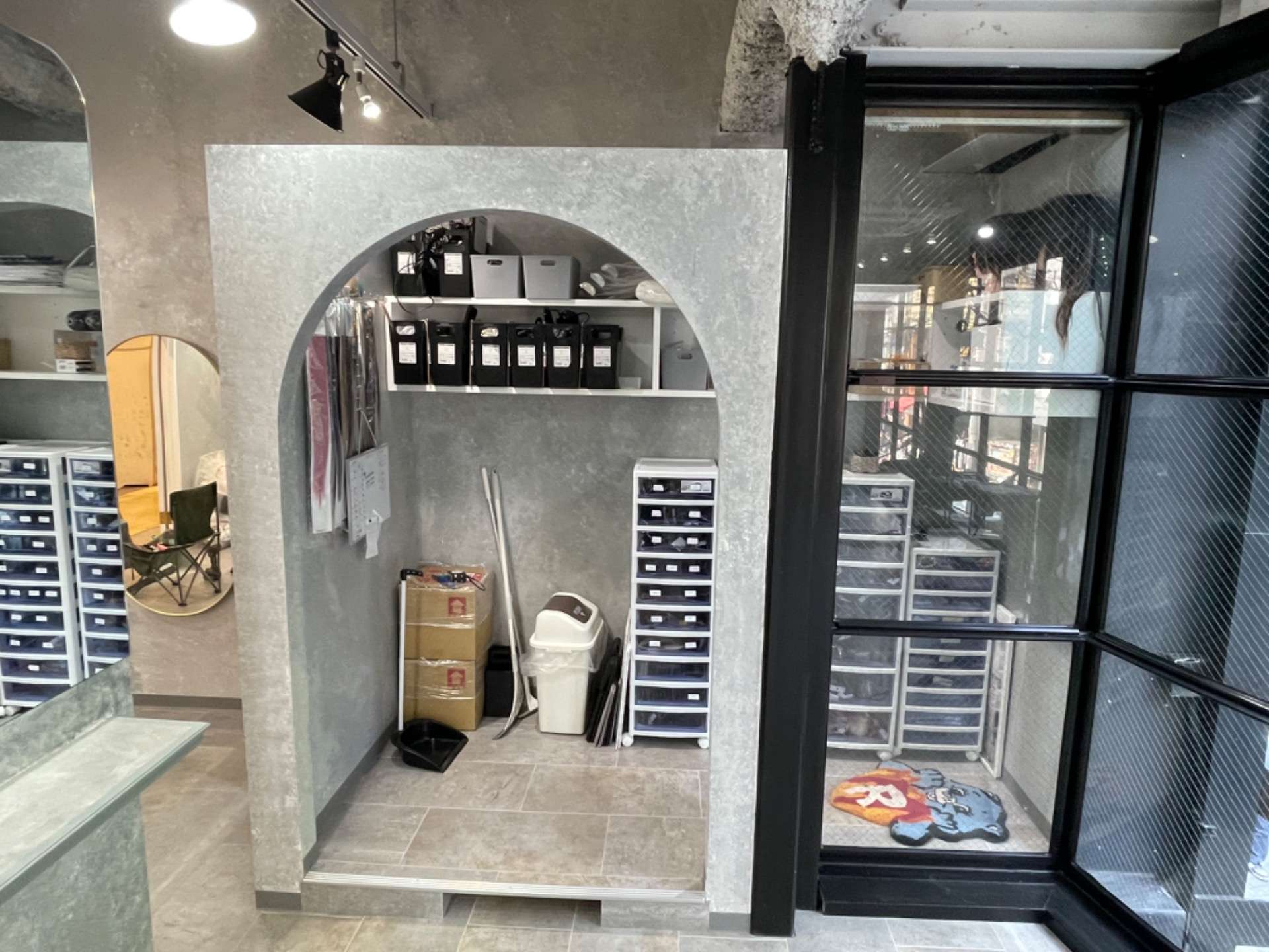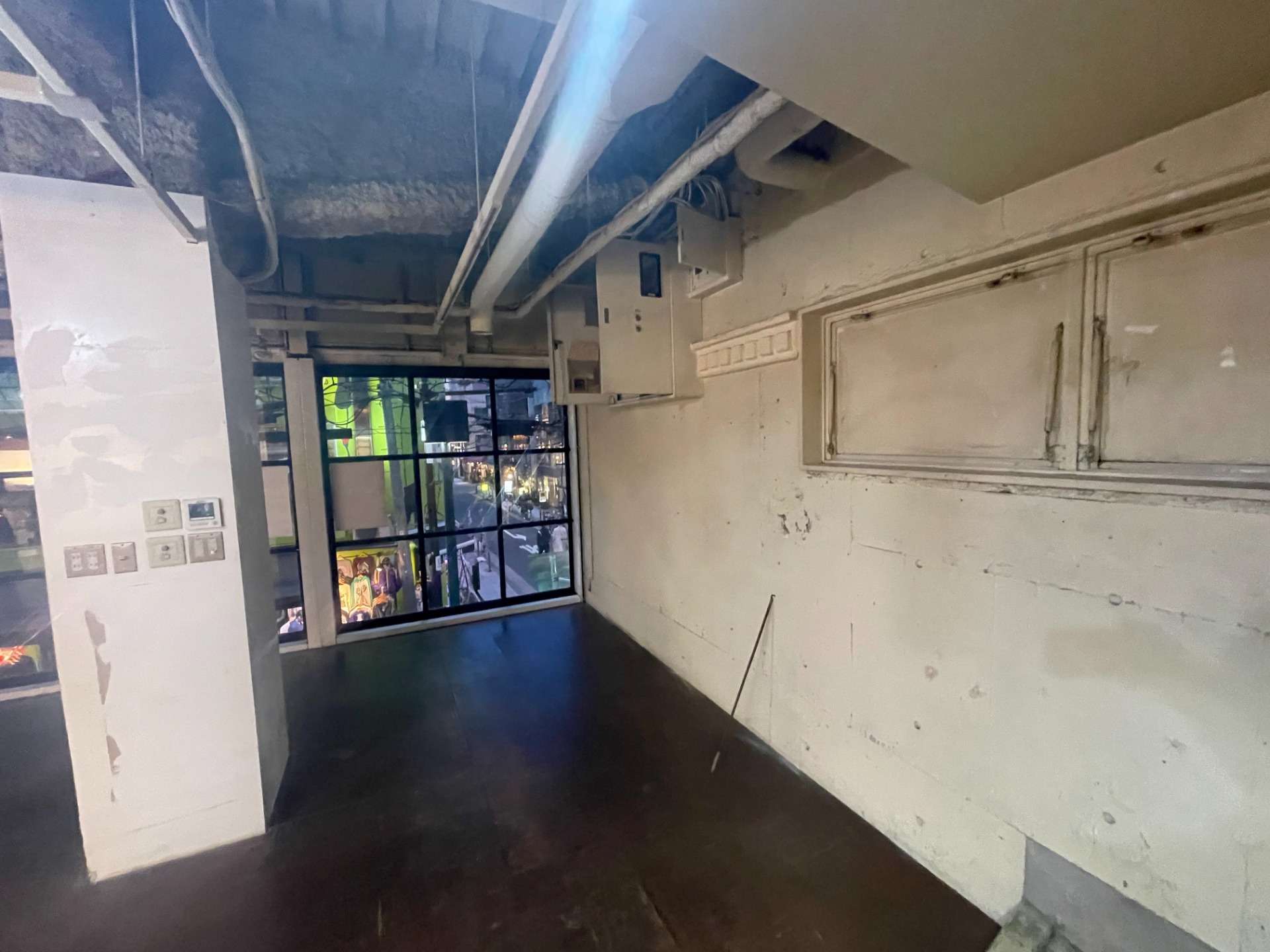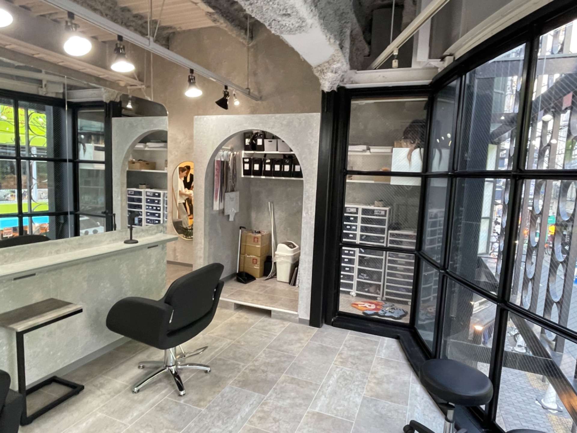 壁面はコンクリート風の塗装仕上げとした。